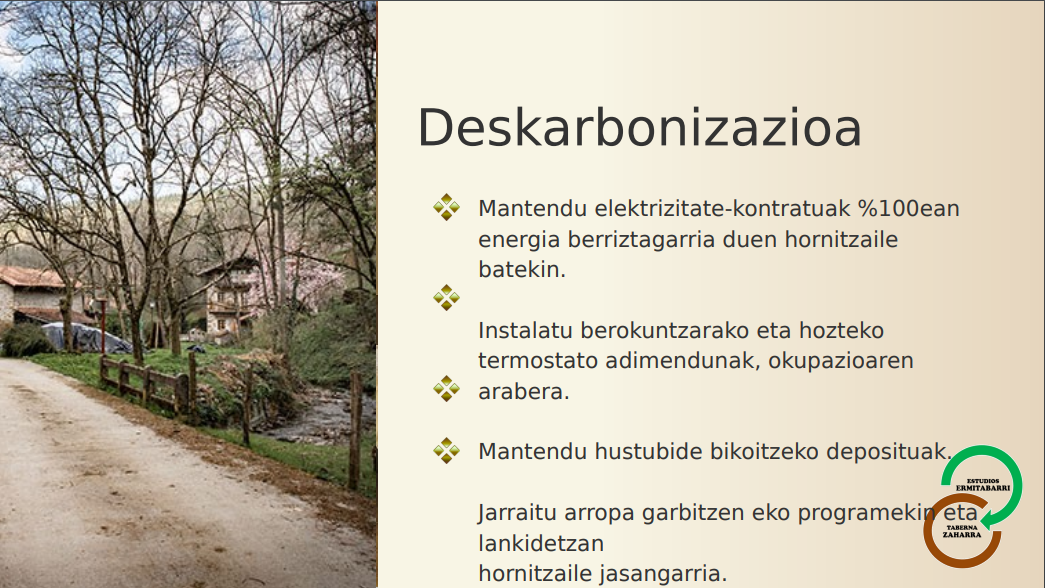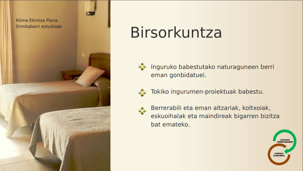 En ESTUDIOS ERMITABARRI estamos plenamente concienciados de la necesidad de cuidar el medio ambiente y respetar nuestro entorno. Por ello, adoptamos medidas que ayudan a reducir los impactos de nuestra actividad, reduciendo el consumo energético, de agua y otros recursos:
